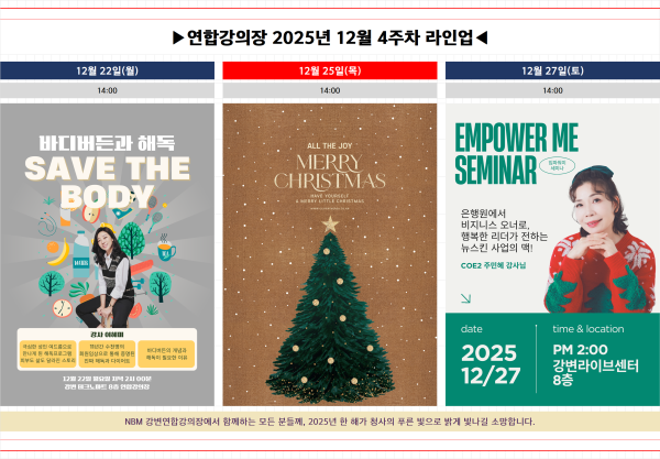 [공지] 연합강의장 2025년 12월 3주차 강사 라인업 (25.12.15Ver. 업로드)